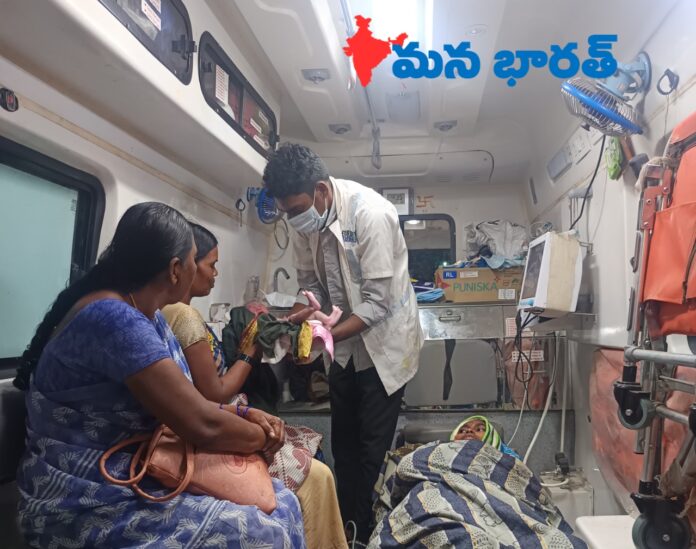 మన భారత్ ఆదిలాబాద్తాంసీ మండలంలోని గిరిగామ గ్రామానికి చెందిన యశోద బుధవారం రాత్రి పురిటి నొప్పులు రావడంతో కుటుంబ సభ్యులు వెంటనే 108 అంబులెన్స్ సిబ్బందికి సమాచారం అందించారు. సమాచారం అందుకున్న వెంటనే అంబులెన్స్ సిబ్బంది గ్రామానికి చేరుకుని ఆమెను రిమ్స్ ఆస్పత్రికి తరలించగా మార్గమధ్యంలోనే యశోదకు పురిటి నొప్పులు ముదిరిపోవడంతో అంబులెన్స్‌లోనే పండంటి మగబిడ్డకు జన్మనిచ్చింది. 108 సిబ్బంది చాకచక్యంగా స్పందించి తల్లి, శిశువుకు అవసరమైన వైద్య సహాయం అందించారు. ఈ సంఘటనపై 108 ఈఎంటీ వంశీ మాట్లాడుతూ.. “మాకు సమాచారం అందగానే వెంటనే వెళ్లి రోగిని ఆస్పత్రికి తరలించాం. మార్గమధ్యంలోనే ప్రసవం జరగడంతో తల్లి, శిశువును సురక్షితంగా ప్రసవింపజేశాం” అని తెలిపారు. పైలట్ పోచ్చన్న మాట్లాడుతూ, “తల్లి, బిడ్డను మెరుగైన చికిత్స కోసం రిమ్స్ ఆస్పత్రికి చేర్చాం. ప్రస్తుతం ఇద్దరూ క్షేమంగా ఉన్నారు” అని తెలిపారు. ఈ ఘటనపై గ్రామస్థులు 108 సిబ్బందిని ప్రశంసిస్తూ వారి సేవాభావాన్ని కొనియాడారు.