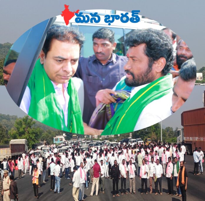 మన భారత్, ఆదిలాబాద్: బీఆర్ఎస్ వర్కింగ్ ప్రెసిడెంట్ కేటీఆర్ పర్యటనకు సంబంధించి రోల్ మామడ టోల్‌ప్లాజా వద్ద భారీ స్వాగతం కనిపించింది. బోథ్ ఎమ్మెల్యే అనిల్ జాదవ్ ఆధ్వర్యంలో వేలాది మంది కార్యకర్తలు, అభిమానులు కేటీఆర్‌కు అట్టహాసంగా స్వాగతం పలికారు. డప్పుల వాద్యాలు, బానర్లు, పార్టీ జెండాలతో ప్రాంతం పండుగ వాతావరణాన్ని దక్కించుకుంది.