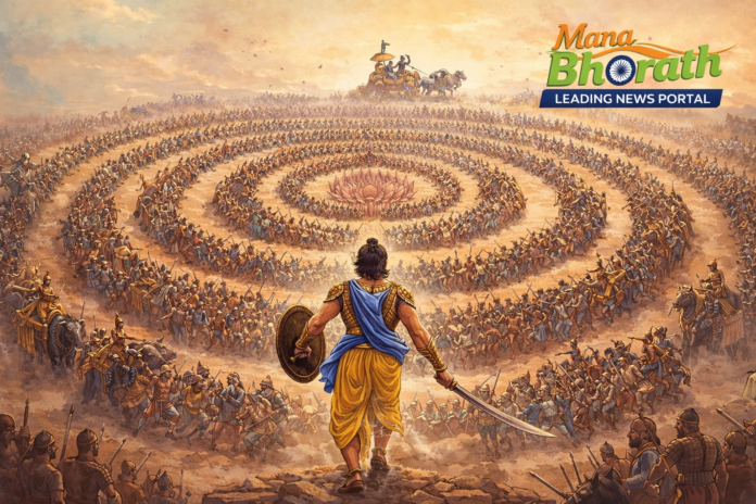 ప్రస్తుతం క్లిష్ట పరిస్థితుల్లో చిక్కుకున్నప్పుడు “పద్మవ్యూహంలో ఇరుక్కుపోయాడు” అనే మాటను తరచుగా వినిపిస్తుంటుంది. ఈ పదానికి మూలం మహాభారతంలో ఉన్న ఒక అత్యంత క్లిష్టమైన యుద్ధ వ్యూహం. శత్రువులను మభ్యపెట్టి వారిని చుట్టుముట్టే విధంగా రూపొందించిన ఈ సైనిక నిర్మాణాన్ని పద్మవ్యూహం లేదా చక్రవ్యుహం అని పిలుస్తారు.